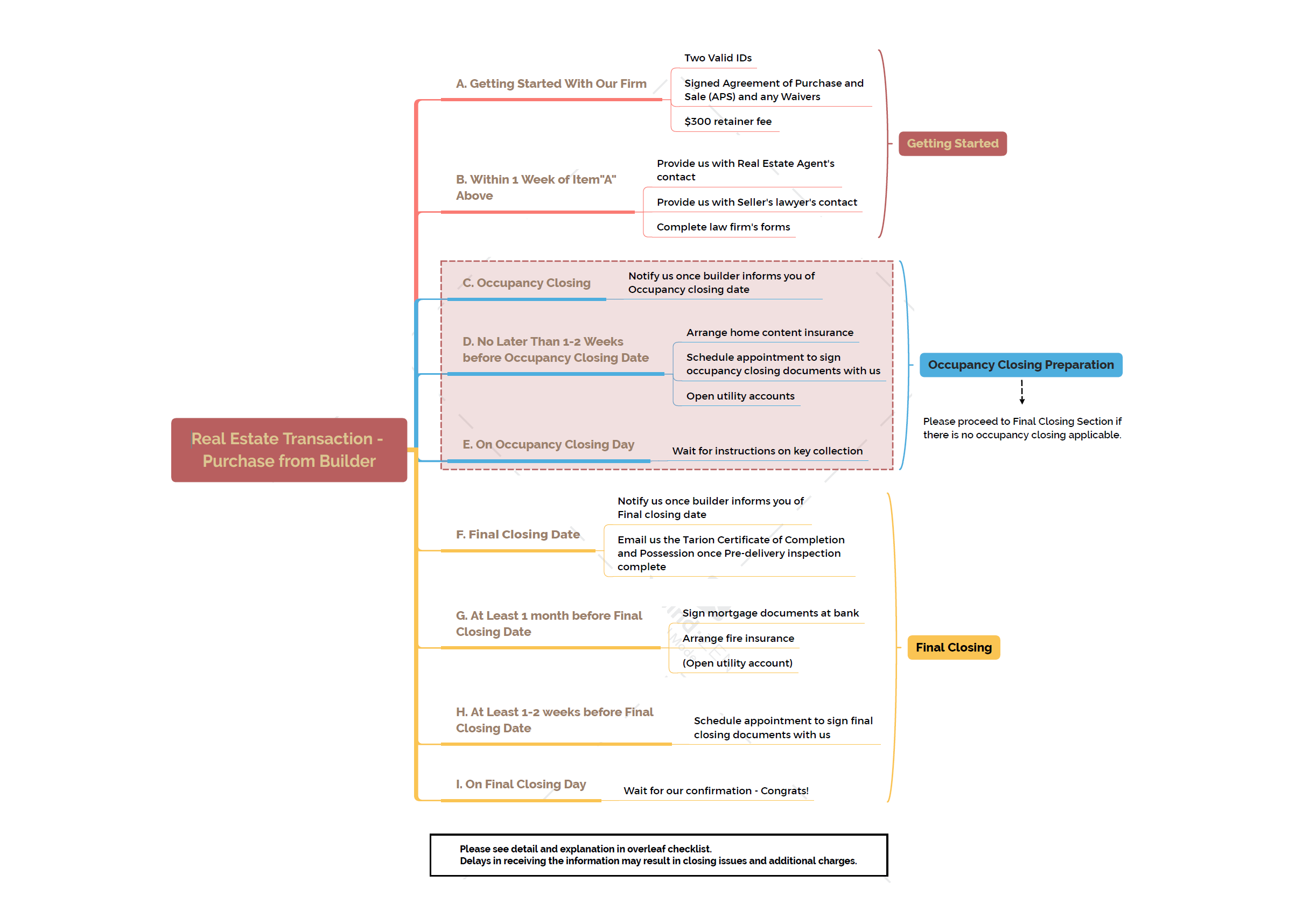 If there is an Occupancy Closing involved, there will be additional work and requirements from the builder’s lawyer. Please provide our firm with the following: